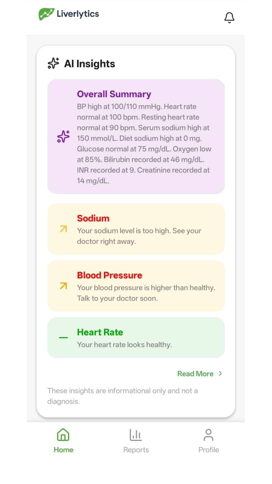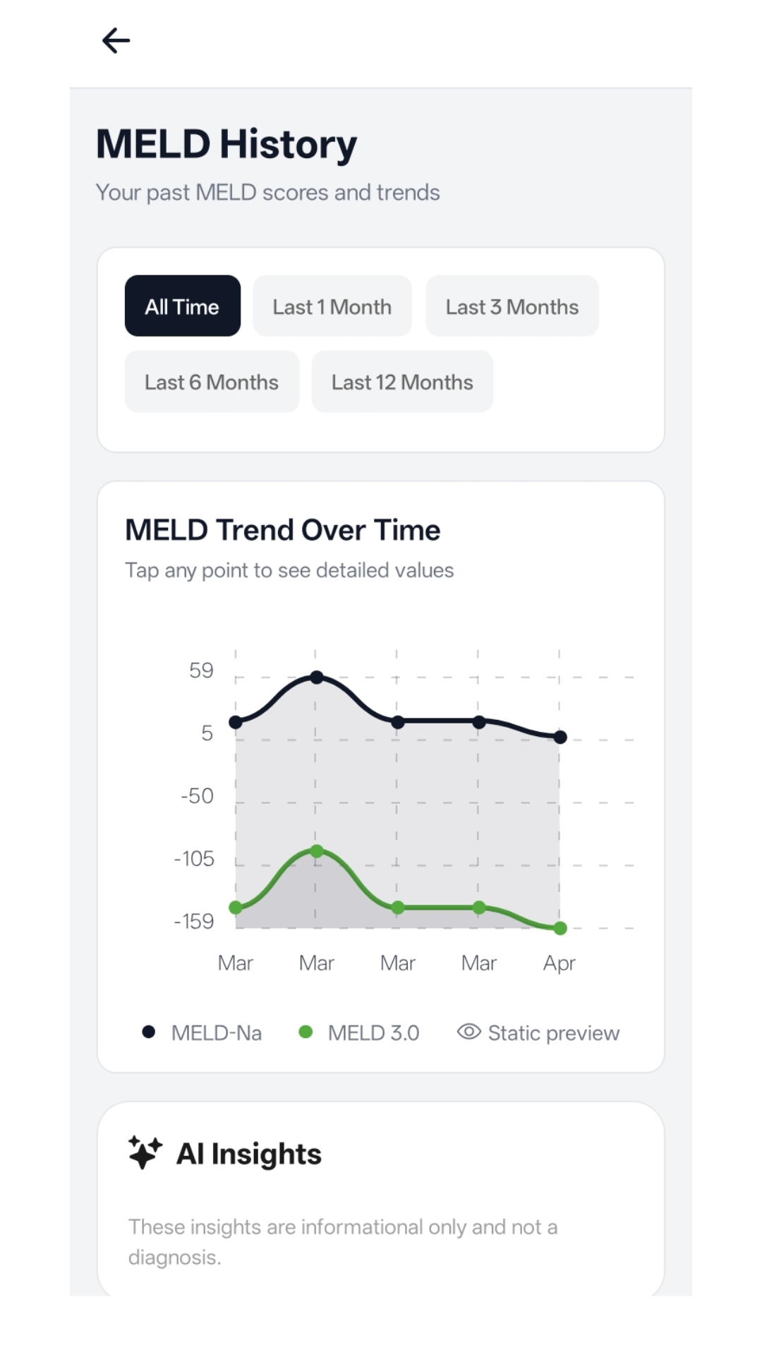 Get a quick overview of liver health with AI-powered insights, key metrics, and personalized recommendations—all in one place.